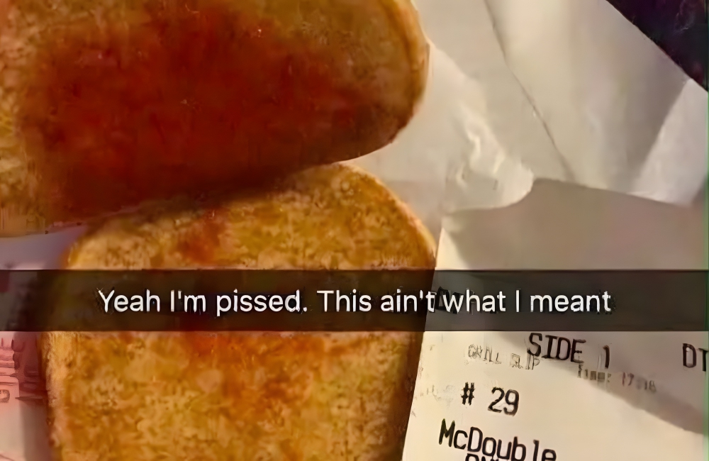 What he got served was pure sass. The McDonald’s workers, clearly annoyed that someone was making a special request, gave him a bun with “ONLY ketchup” in it. As the customer said, “I’m p*ssed. This ain’t what I meant.” Let’s hope he at least got a refund.