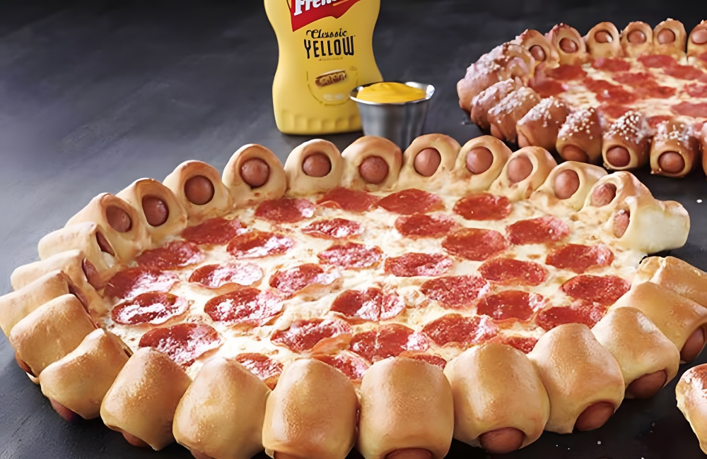 There’s very little limit to what Pizza Hut will and won’t put on or in its crust, and Hotdog Pizza is just another example of that. The Hotdog Pizza has been around since 2015, when it was introduced to honor the anniversary of Stuffed Crust (which has cheese in it). Hotdog Pizza is pizza surrounded by twenty-eight hotdogs.