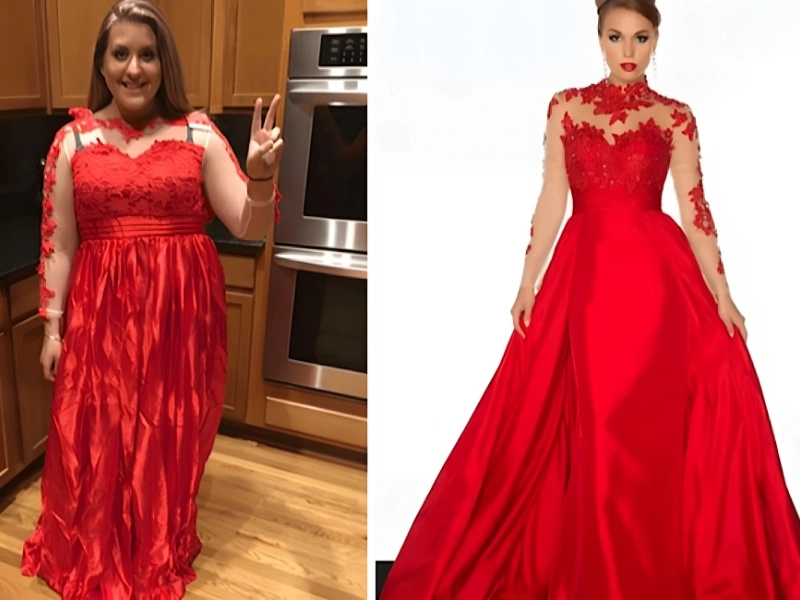 A seller on the website attempted to make their own version of the outfit, but they were completely unsuccessful. The customer ended up looking like one of Pepsi’s Flamin’ Hot Cheetos instead of high-quality cloth and a form-fitting bodice fit for a queen. It goes without saying that the gown will not be up for any prizes.