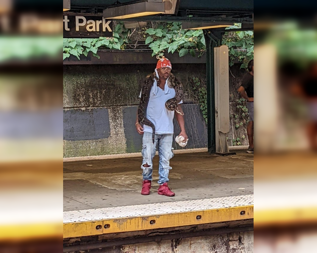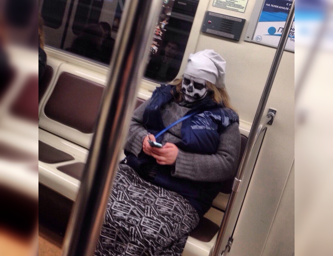 An unusual passenger in the night metro.