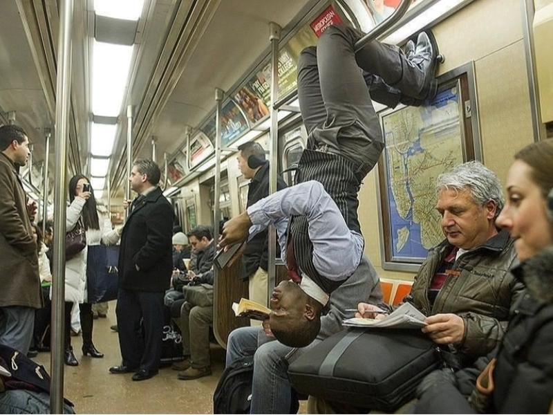 He simply comes from Australia. This funny scenario catches a moment that plays with our viewpoint and spatial orientation, therefore referencing life “down under.” The passenger’s posture or arrangement hints to a lighthearted gesture to the location of the Australian continent on the other side of the earth. This imaginative rereading of geographical variations turns a regular subway trip into a smart visual joke that fascinates other passengers. The scene shows how straightforward motions or poses could produce unforgettable public comedy and wit moments. Whether by intentional performance or unintentional positioning, this Australian-themed moment gives the daily commute some international flair and comedy, reminding us that humour and creativity can be discovered in the most unlikely locations.