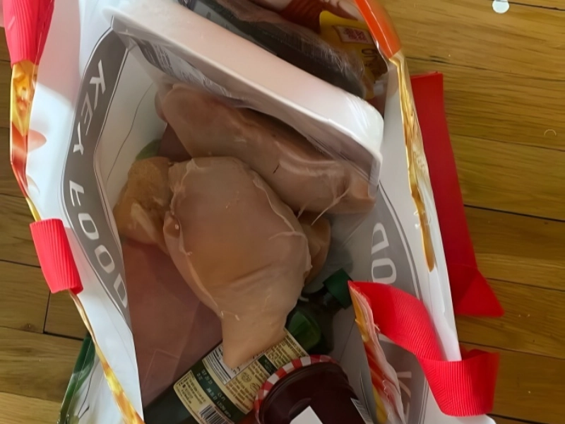 There are many services out there for online grocery delivery, but Instacart is perhaps one of the most famous. They pride themselves on delivering groceries on time and without any inaccuracies, and many customers have seen that from them. Unfortunately, this was not one of them. The person who packed this bag obviously wanted to save space and stack the products upright. But should you really do that with raw chicken? Well, no!