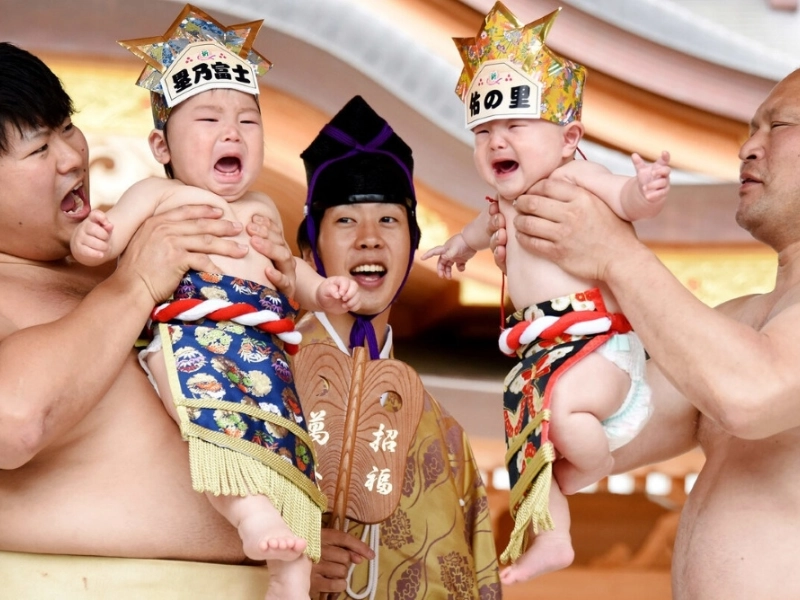 a customary Japanese occasion, typically hosted in Tokyo’s Sensoji Temple. There are sumo wrestlers competing who are nursing babies. The first youngster to cry wins. In Japanese culture, this occasion is associated with good health and protection from evil spirits.