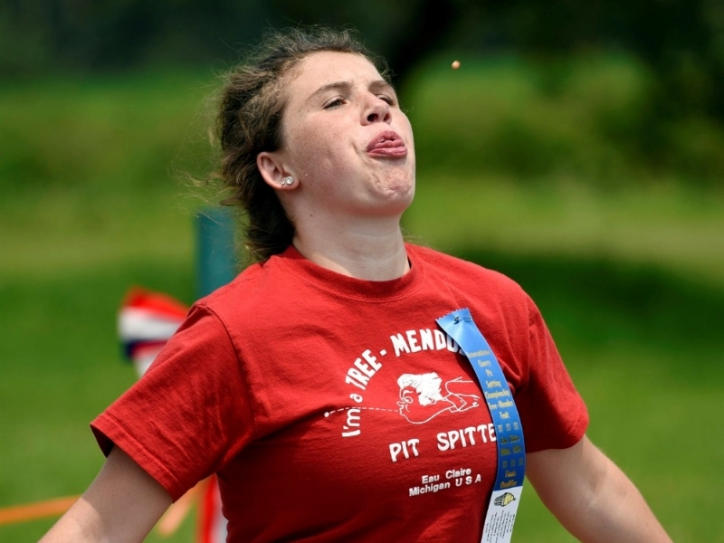 This is an event for proficient spiters only. Whoever can spit cherry pits as far as possible wins.