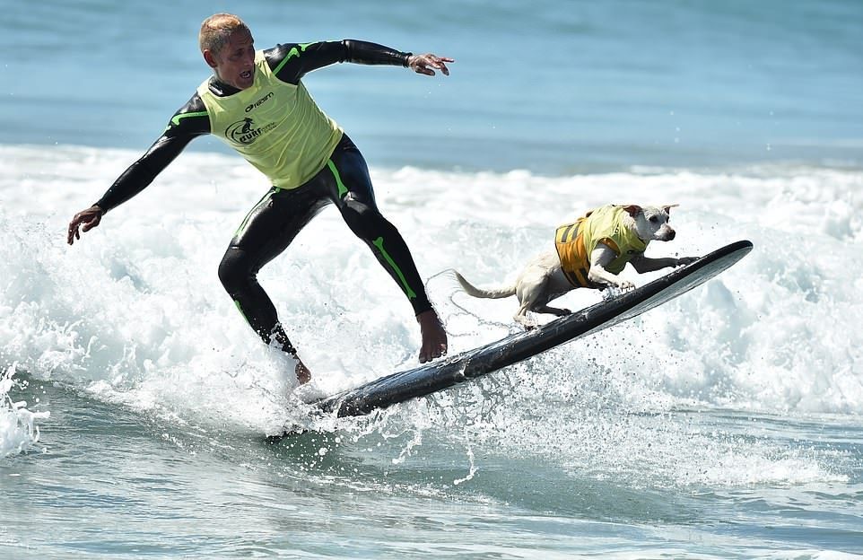 Is a popular water sport where dogs ride on surfboards alongside their owners. It’s a fun and entertaining activity often seen at beach events and competitions.