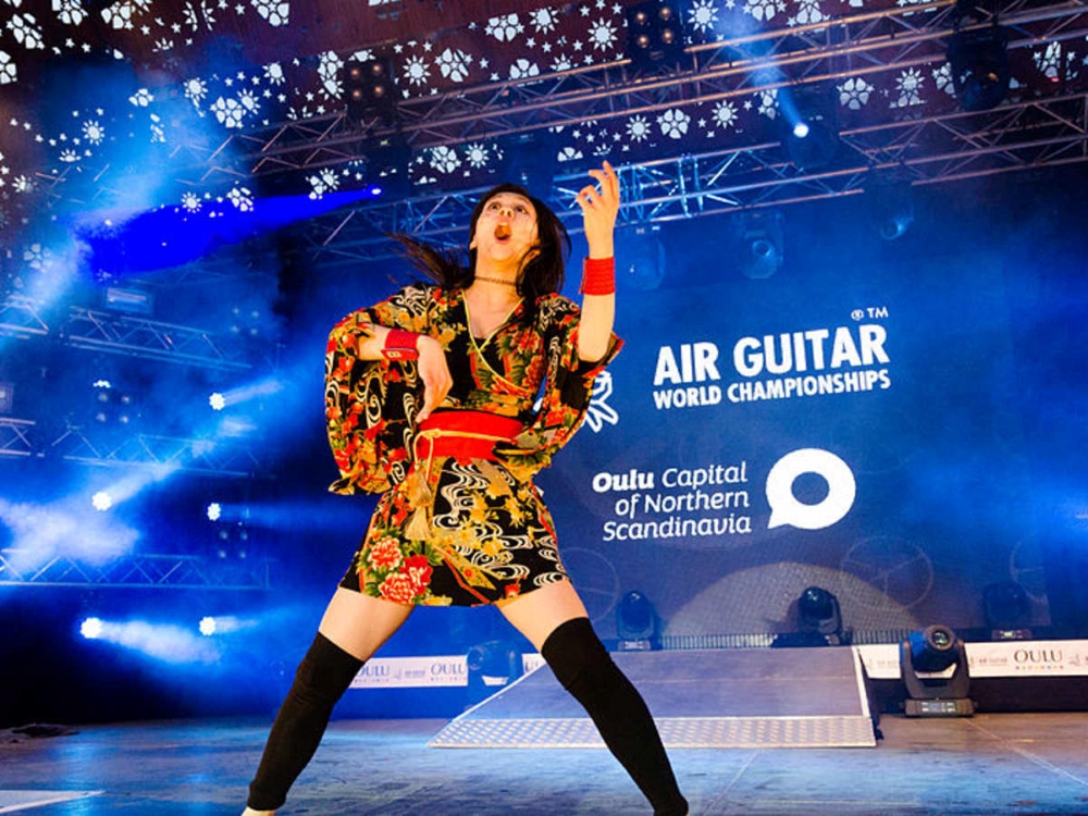 Is an entertaining event where participants pretend to play the guitar without an actual instrument, demonstrating their creativity, showmanship, and passion for music. The winner gets a real guitar at the end.