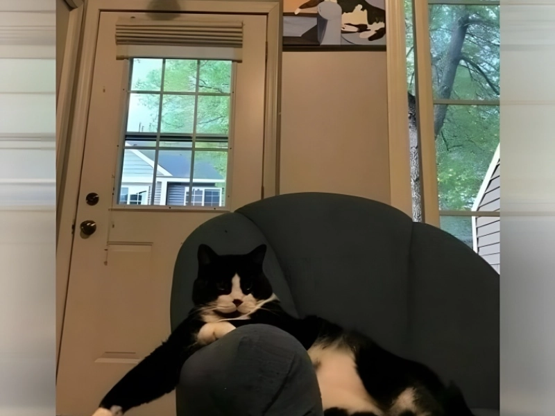 Although having a painting of your pet is certainly a great way to honour your furry friend, this situation goes to another level totally. The cat in issue has perfected the talent of replicating its own portrait in real life, assuming the same posture as the one caught on the artwork mounted on the wall. Right down to the laid-back posture and casual couch ownership, the actual scene and the painted counterpart are shockingly comparable.