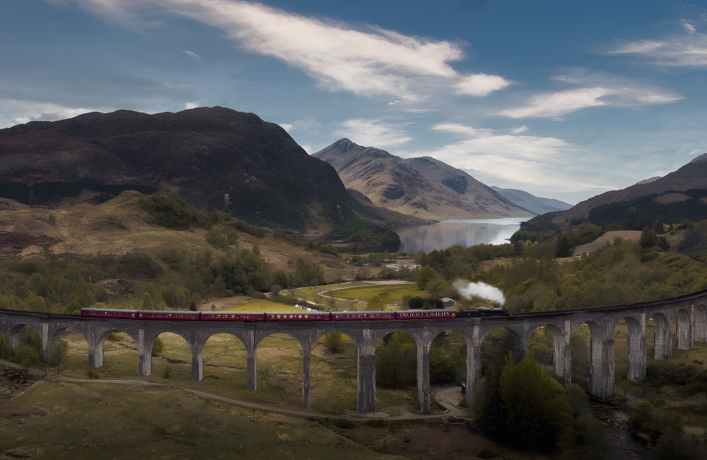 Pictured here is the Glenfinnan Viaduct, a railway viaduct found in Inverness-shire, Scotland. It was built in the late 1800s, and you can find it at the top of West Scotland’s Loch Shiel. The line still operates to this day, acting as a crucial artery for the Highlands’ economy. In the summer, the popular tourist train The Jacobite runs along this line, as does the Royal Scotsman.