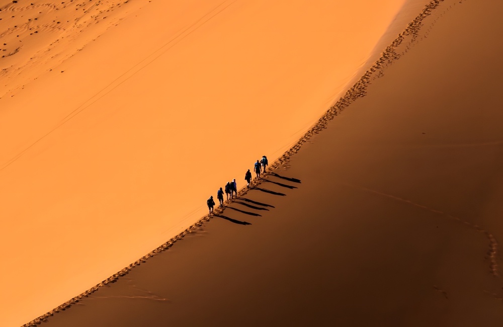 Sugrit Jiranarak took this photo of people trekking through a hot, arid desert. We can only imagine how taxing this walk must be, as the people in this photo slog through the desert in a single-file line. The overall effect of this photo is yet another reminder of how small we are compared to the vastness of earth.