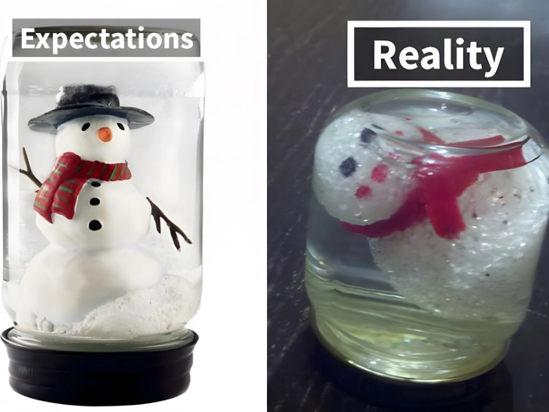 This DIY project was inspired by a proposed snow globe that appears to be a playful winter ornament consisting of a jar, a handcrafted snowman wearing a red scarf, and a sticky liquid. One person’s attempt to replicate the snow globe ended up looking like the Stay Puft Marshmallow Man from Ghostbusters, stuck in glue to prevent it from escaping.