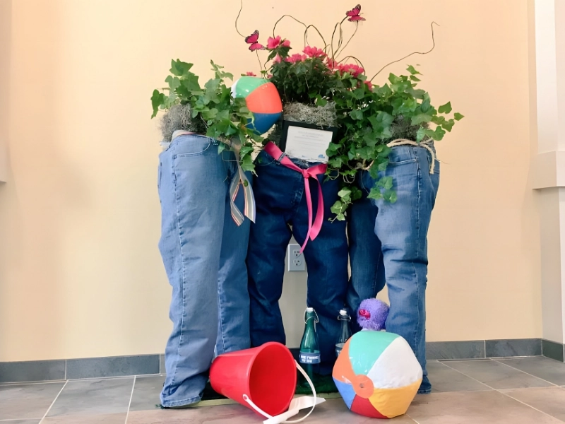 Though folks on Pinterest adore this denim planter because it has flowers in it, it also makes a weird decoration for any day. However, it would be especially creative for Halloween. However, you might place a pot full of artificial bones in place of the vibrant flowers.