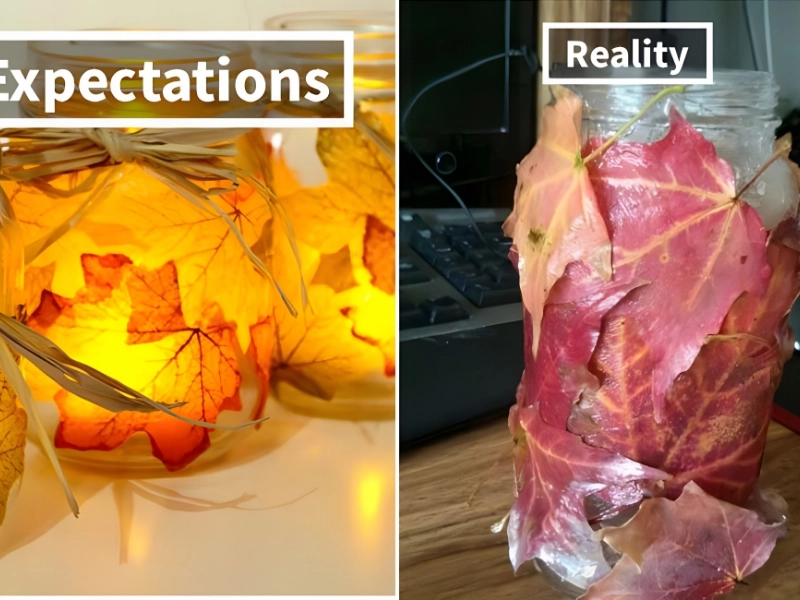 The identical ingredients are shown at the bottom, but without the light, and it’s clear that the individual attempting to replicate the DIY experiment didn’t have much luck. It would be better if you purchased home decor and pretended to make it—no one would ever find out.