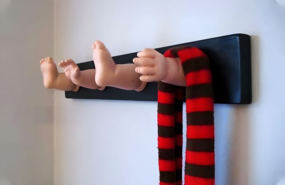 Taking the limbs off (really, dismembering in a Saw-like fashion, for those that aren’t squeamish) a babydoll and turning them into a macabre coat rack is one way to play it, though it probably will scare off your guests. You’re better off just going to Amazon or Bed Bath and Beyond.