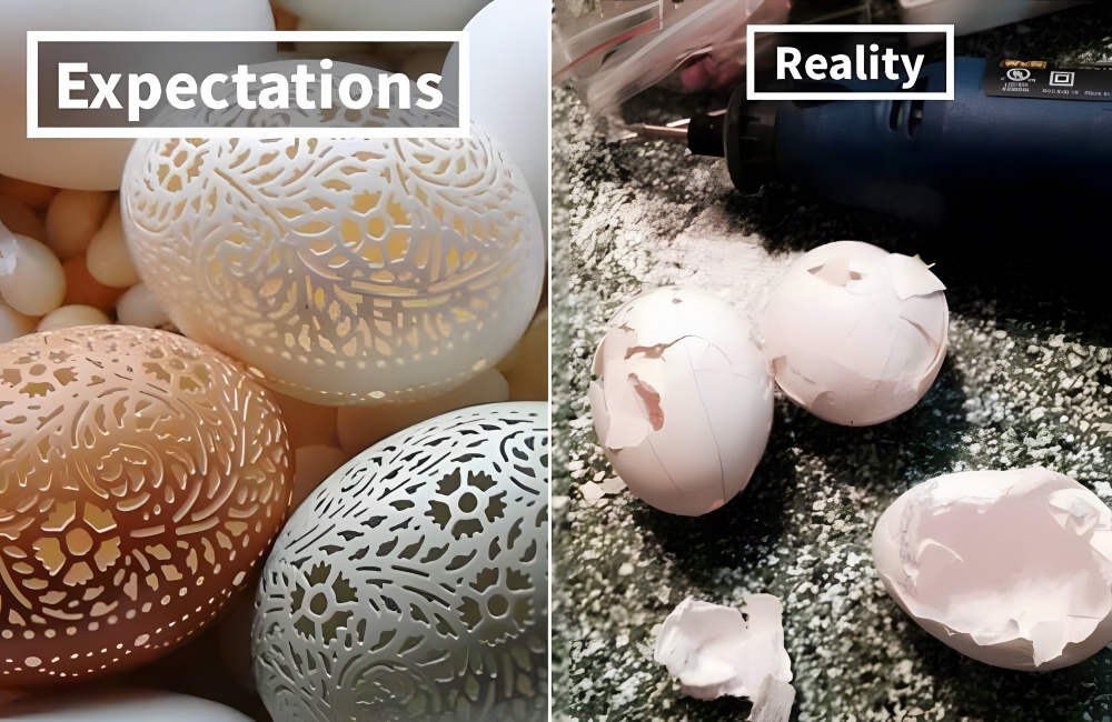 Apparently, to make these eggs, you need a high-speed drill. To make them, sketch a lace pattern on the clean, blown shell (meaning the shell has no actual egg in it). Then, according to one Pinterest user, you use a high-speed drill and hand-carve the design. These drills can cost up to $1,000. It’s definitely less expensive to spend $1.54 on a dozen eggs and paint them using a $5 kit.