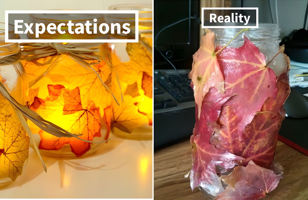 You have to wonder how many of these “DIY Projects” on Pinterest are actually people bored at home, who buy a decoration from TJ Maxx or Marshalls and pretend they made it themselves. This appears to be the case with the leaf jar. At the top, you have a nice, fall-like decoration that, ostensibly, was made from mason jars, fallen leaves, glue, twine, and a light.