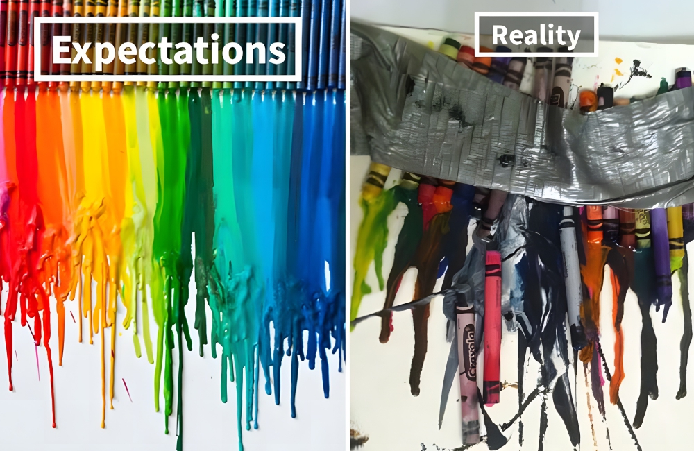 If you’re like most people, you saw that project on Instagram, said, “That’s cool,” and forgot you saw it. However, one person attempted to copy the DIY wall art and found that it didn’t exactly go as planned. Crayola Crayons cost $30 for a 96-pack (the only appropriate quantity to buy), while a hair dryer costs $40, so this is a $70 DIY project with $0 return on investment.