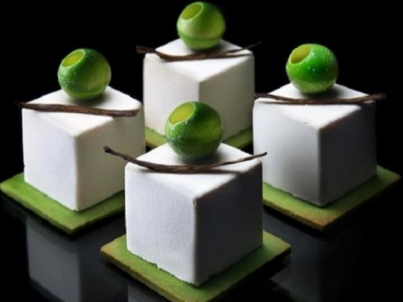 Das Mädchen kreiert erstaunliche Desserts in Form architektonischer Wunderwerke, indem es den köstlichen Geschmack von Gebäck mit geometrischen Formen magisch verbindet.