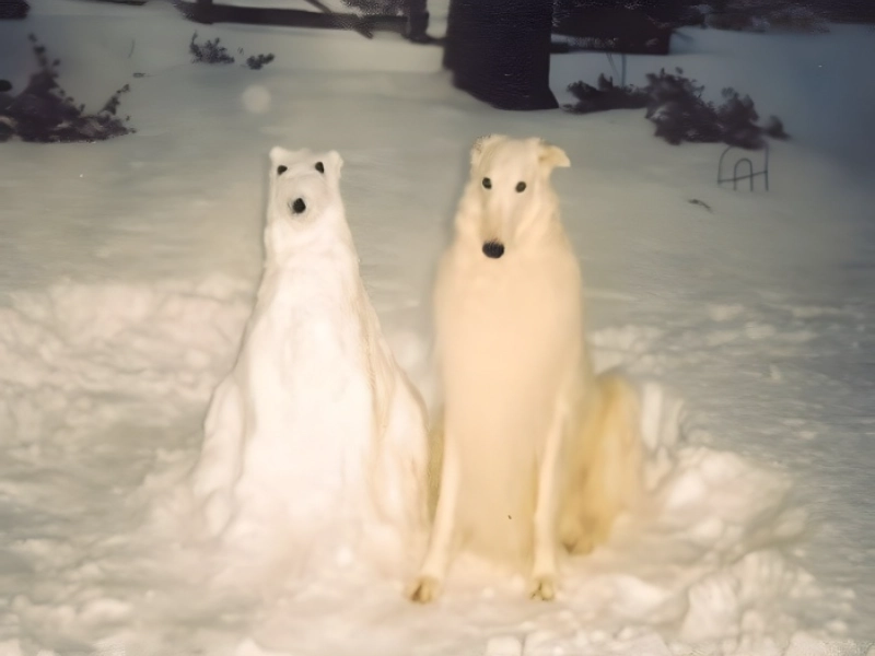 This pet owner has produced what might be the most exact snow-dog imitation ever recorded in an amazing exhibition of observational ability and creative accuracy. From the exact tail curvature to the distinctive head tilt that precisely matches the living counterpart, the focus on anatomical detail is just amazing. Right down to the attentive posture and proud stance, the sculptor was able to convey not simply the physical appearance but also the spirit of their cherished pet. This work is especially remarkable because of the exact matching of dimensions and even fur texture attained by careful control of snow consistency and certain sculpting techniques. Later on, the artist said they spent over four hours fine-tuning the details, referencing images, even including natural components to complement the colour of their dog. The apparent obsession of the genuine dog with its snowy counterpart gives this winter masterwork even more appeal.