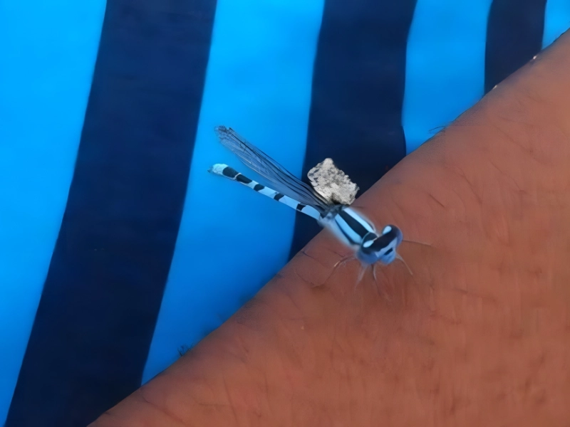 This man was wearing blue shorts and going about his business when a damselfly fell on him. The insect’s design matched that of his shorts, so he quickly took a picture and realized he and the insect were twinning.