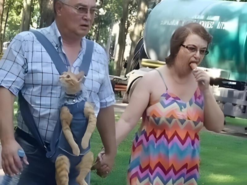 The fact that this couple could just be having an average Tuesday makes this picture very intriguing. Maybe this is their daily schedule: enjoying some street cuisine while organising an organised expedition with their cat pal. All of the participants’ casual attitude points to this being a real slice of their daily lives caught by a lucky photographer rather than a planned photo session. Though such life entails dragging your cat across the city, it’s a fantastic representation of the adage “live your best life”.