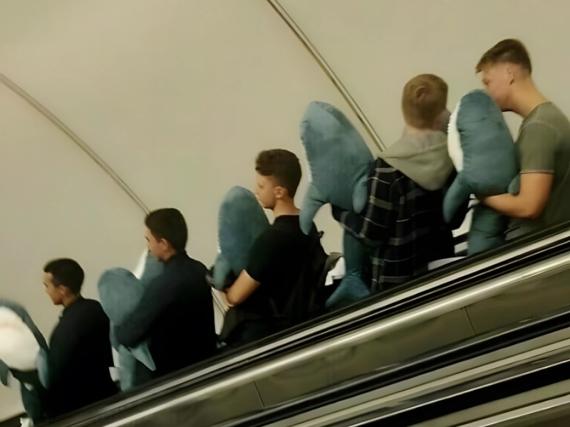 Five people are shown in this wonderfully timed Moscow scene descending an escalator, each clutching their own Blahaj, the now-iconic IKEA stuffed shark that has developed from a basic children’s toy into online craze. The picture shows a perfect junction of commercial culture, online meme growth, and community involvement—a moment that would seem strange without background. The Blahaj has evolved its own cultural relevance and following, transcending mere stuffed animal status.