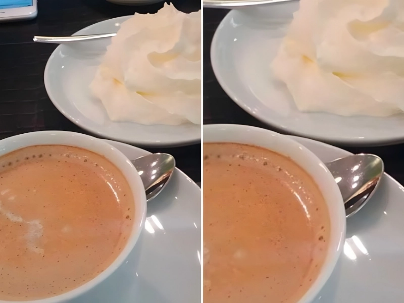 Fortunately, the coffee doesn’t appear to be black, so the patron most likely didn’t have to finish a bitter cup. It is uncertain which particular coffee shop he or she visited, but in Germany, a cup of coffee typically costs $3.44.