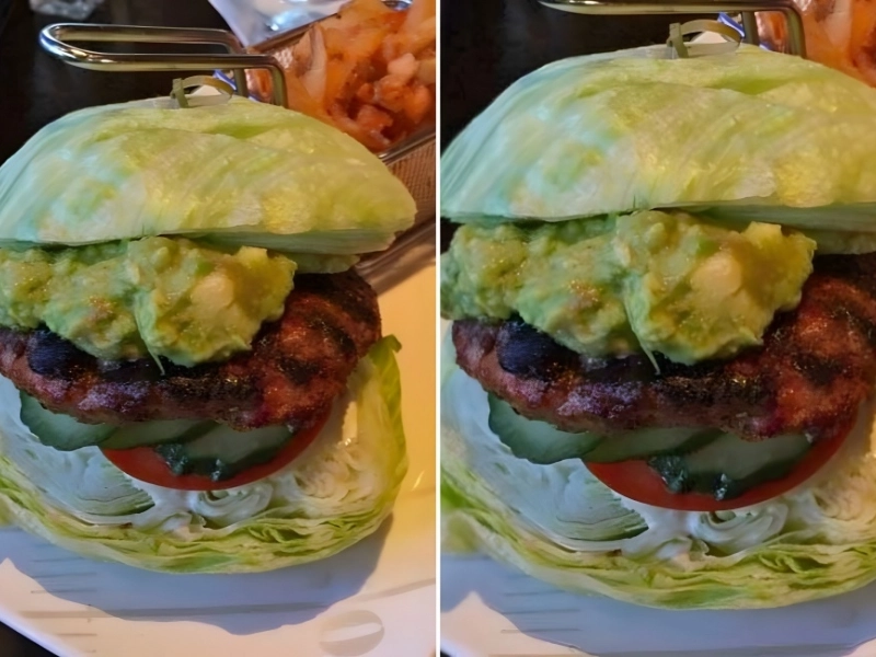 A lettuce burger seems like a decent option in this situation, but they aren’t usually served in a whole head of lettuce with the middle chopped off. The rest of the burger appears fairly nice, we must admit. The lettuce is the only thing that falls short.
