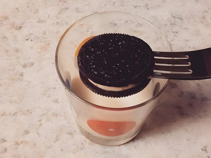 Dip a fork into the crème filling of the cookie. It will stay put in the crème while you dip. In this manner, you can soak the whole biscuit without getting untidy. Whoever came up with this idea is unidentified, but they are unquestionably a genius.
